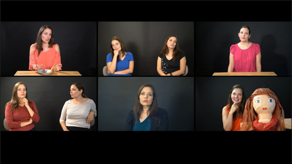 The multiple videos presents the faces of one person and her struggles and contradictions, where the pauses extend the identity of the character. In these performances, with a humorist approach I take on topics such as immigration, stereotypes, racism, identity, politics, and language. My video work utilizes juxtaposition to examine the spaces between cultures, to acknowledge power and inequity, and to create absurdist contemporary mashups of entertainment, politics, and history.