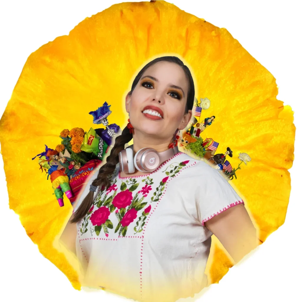 “Piña Navideña” is inspired by the representations of women as hopeful and stoic soldiers for the Communist Revolution in paintings and propaganda during the 1920’s. Takes on nationalist sentiments were popularized in yearly calendars when I was growing up in Mexico and put on the walls in the local markets and “carnicerias” (butchershops).